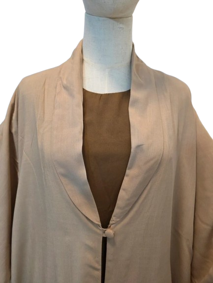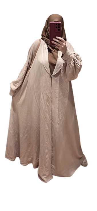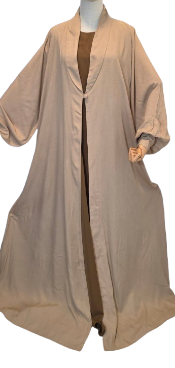 Magnifique ensemble abaya plus sous robe très chic pour toutes vos occasions Abaya avec une très belle coupe élégante bien cloche conçu avec un tissu en lin léger et opaque de bonne qualité Sous robe réalisée avec un tissu léger et respirant qui ne colle pas La coupe est généreuse bien cloche Le modèle convient très bien pour les sœurs grandes de tailles